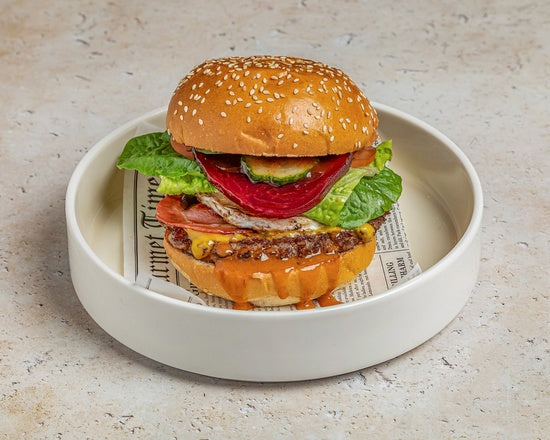 Juicy beef patty, cheese, bacon, onion, beetroot, pineapple, lettuce, tomato, egg, BBQ sauce, and chipotle mayo. Comes with fries.