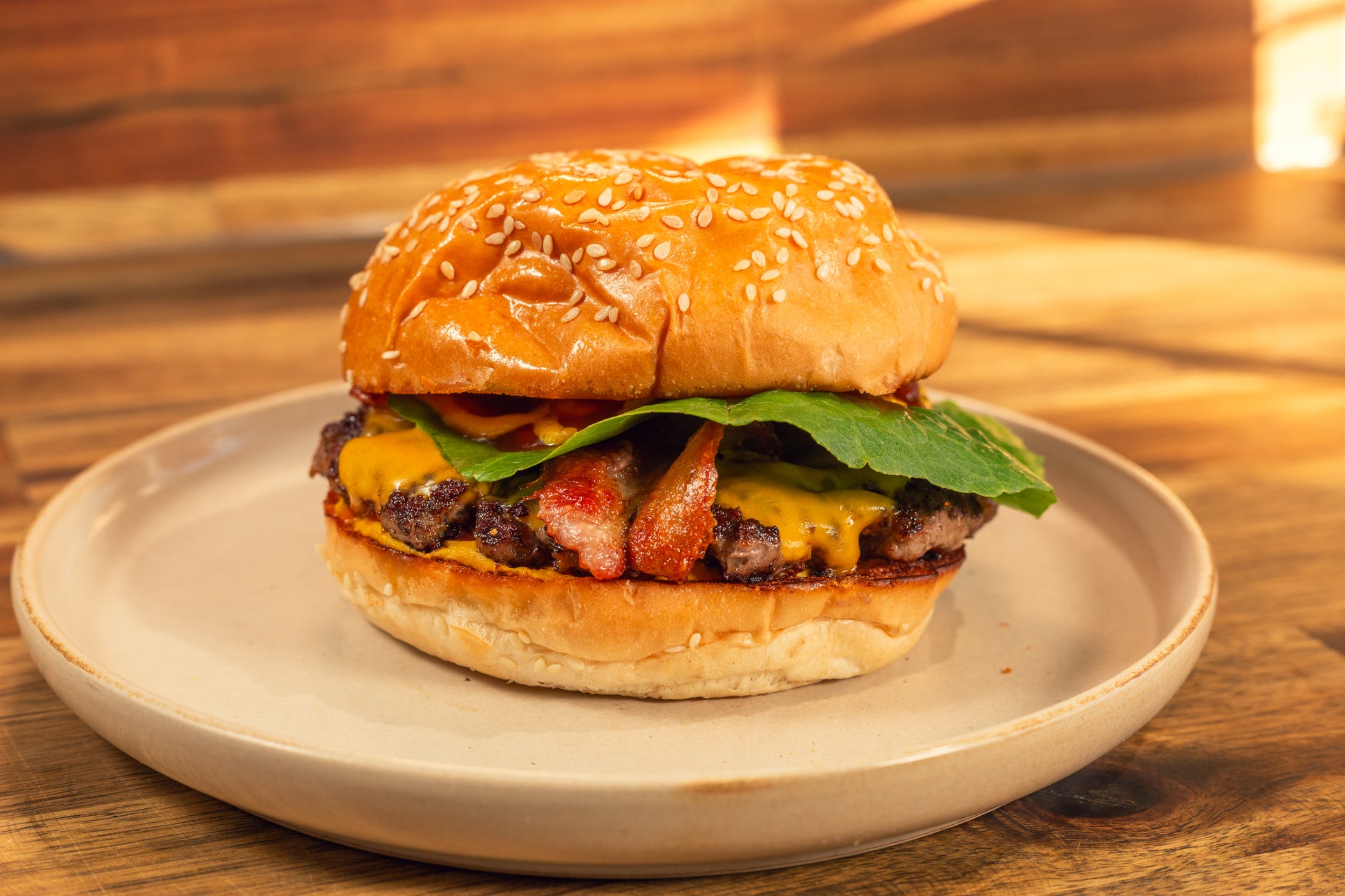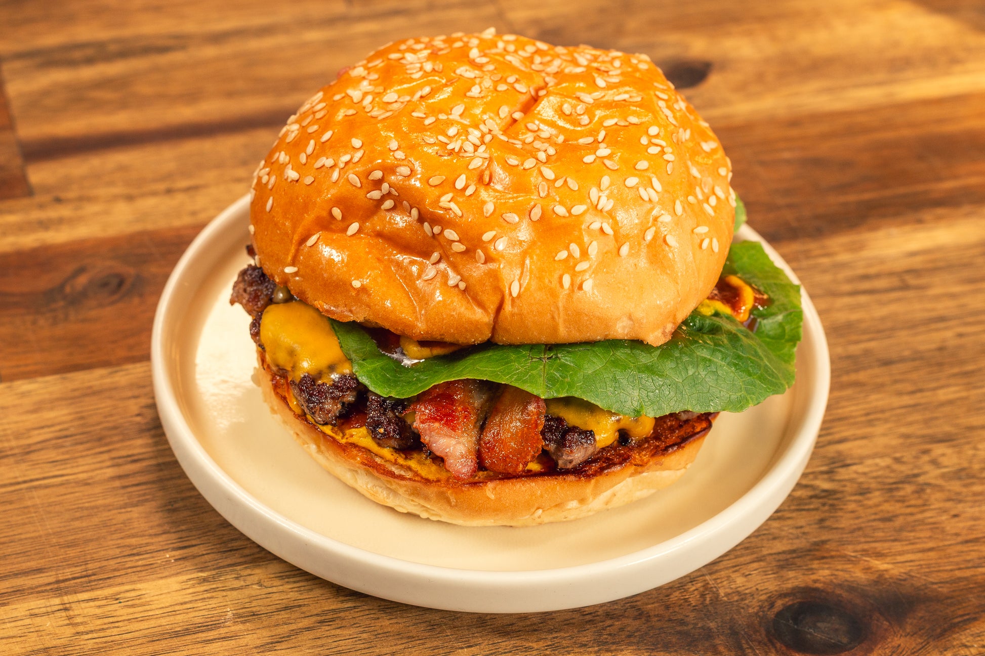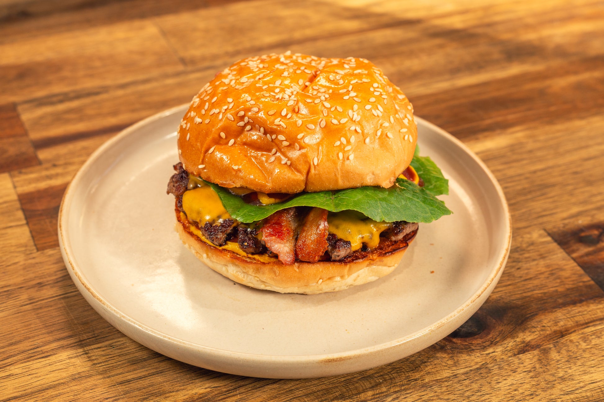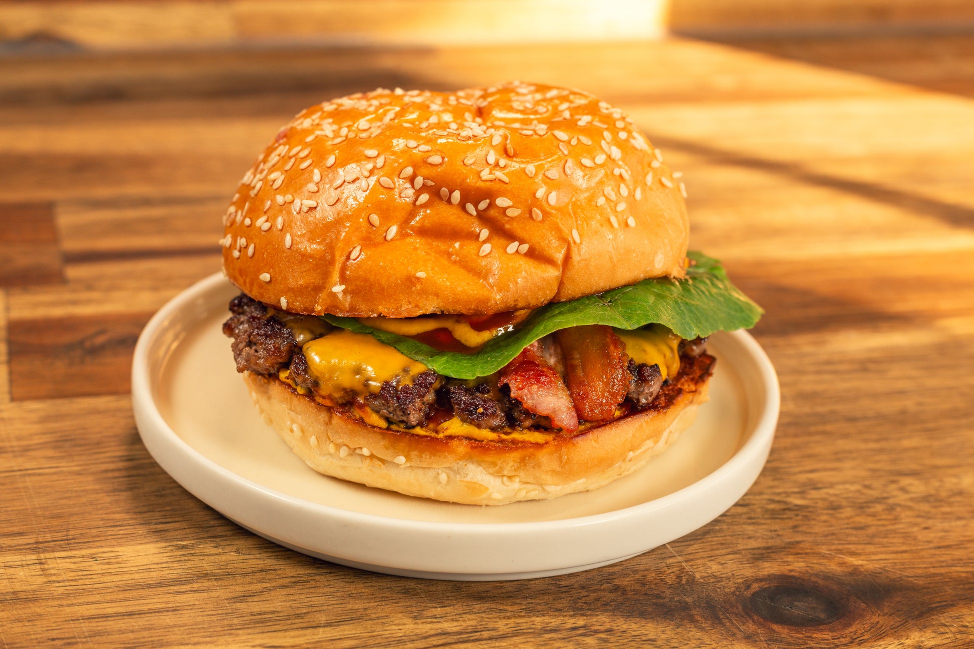 Juicy beef patty, bacon, pickles, lettuce, cheese, mustard mayo, and ketchup. Comes with fries.